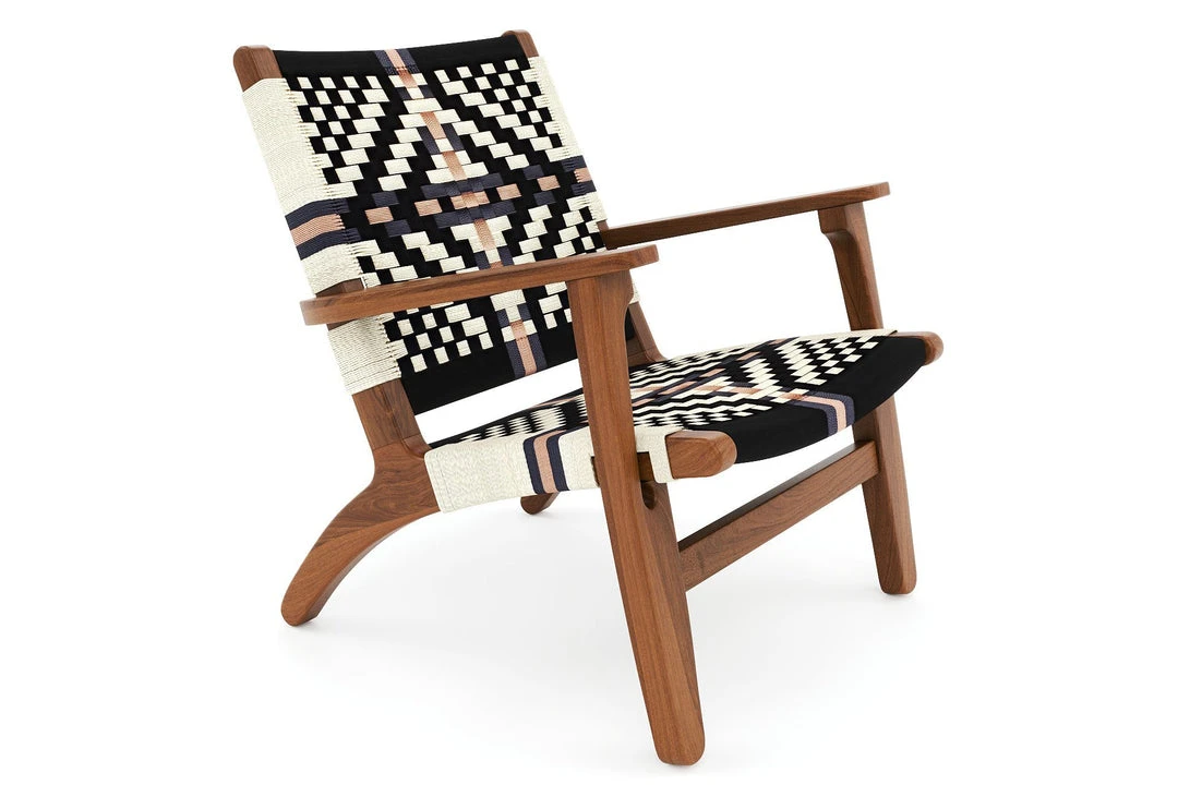 The Masaya Arm Chair features a solid wood frame, handwoven seat and backrest, and sturdy yet comfortable armrests. Handcrafted from sustainably sourced wood and handwoven by local artisans, the Masaya Arm Chair is heirloom quality furniture that will stand the test of time. Colonial pattern is inspired by the ornate tile work of Spanish Colonial architecture found throughout Nicaragua. Its black and white juxtaposition is ideal for those wanting a monochromatic look without sacrificing intricate details.