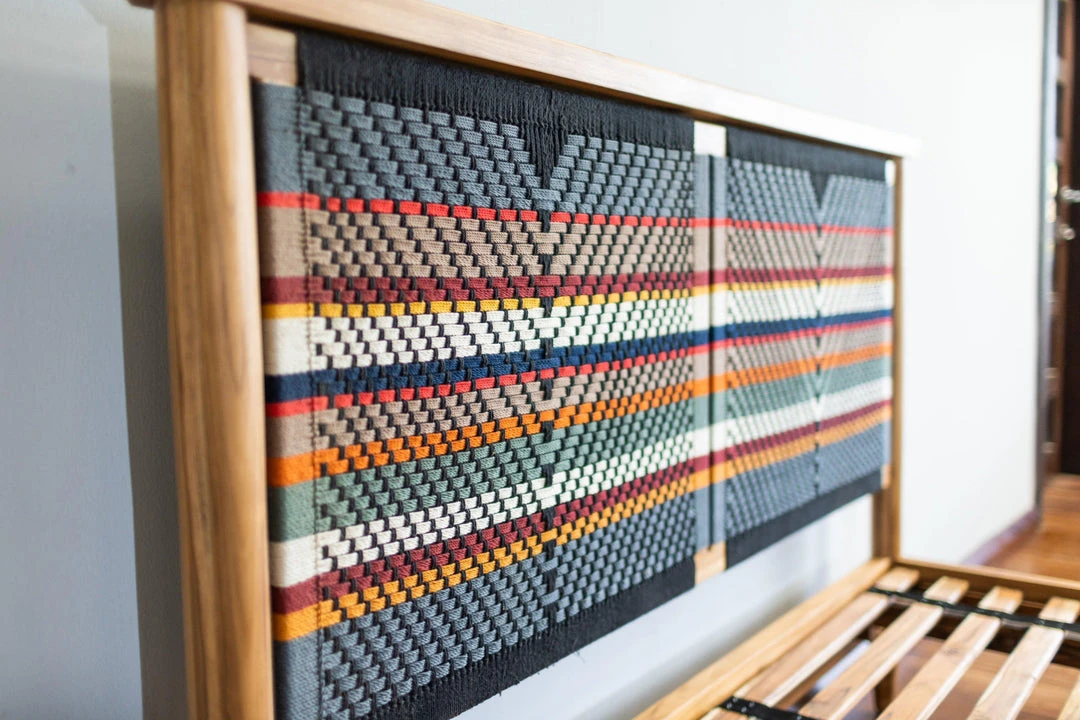 The San Geronimo pattern is inspired by the colorful festival of Saint Geronimo that takes place in the town of Masaya each year. Its colorful pattern is further complemented by a solid wood frame. Add it to any bedroom for a pop of color.