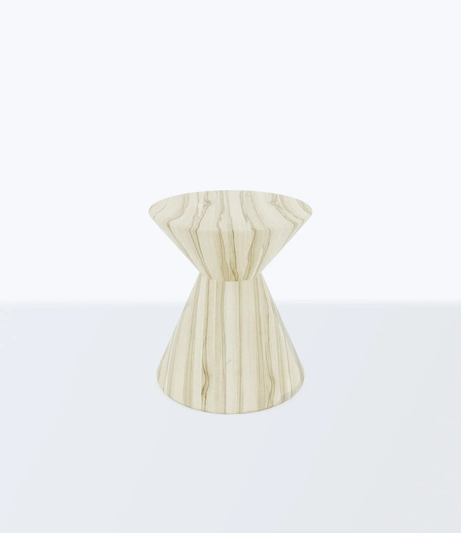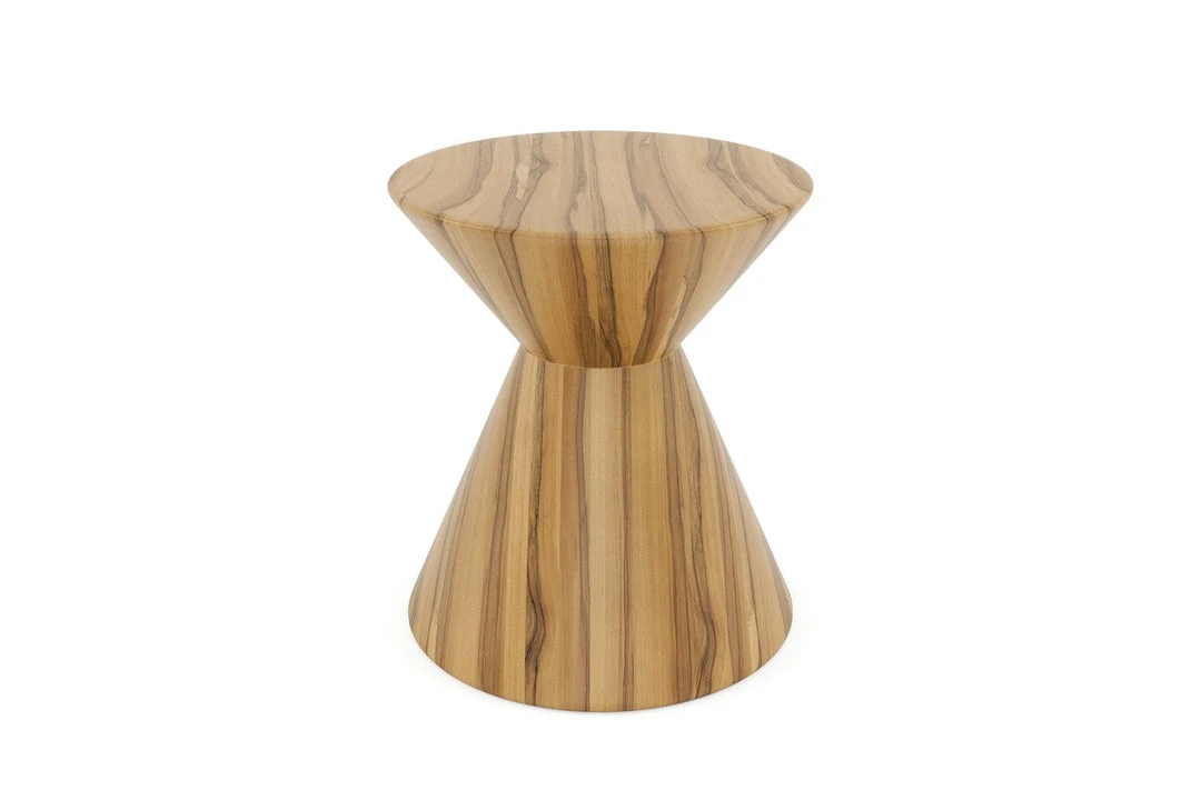 A cultural piece of wooden furniture inspired by the ”trompo” game. Handcrafted from solid, laminated, sustainably sourced Teak. The character and grain of wood naturally vary, making each piece completely unique.