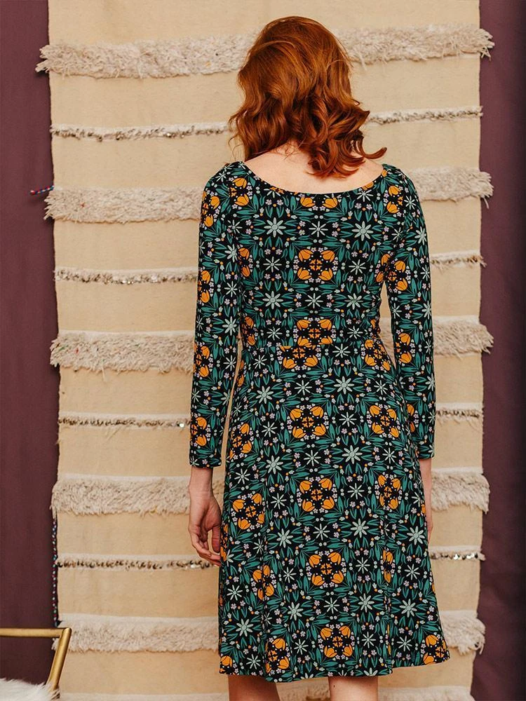 Long sleeves and comfortable organic cotton jersey fabric make this a must-have fit-and-flare dress.