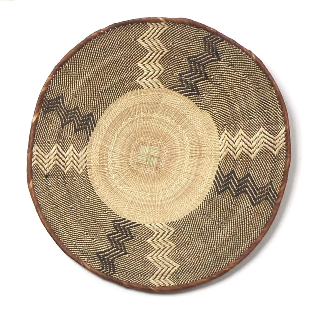 These beautiful baskets are made in the remote Binga district of Northern Zimbabwe – home to the displaced Tonga people. Today, many Tonga women utilize traditional weaving techniques to create intricately patterned baskets. Tonga baskets are woven using the over and under style of ‘simple’ weaving and a 16 inch diameter basket can take around 2 weeks to complete.