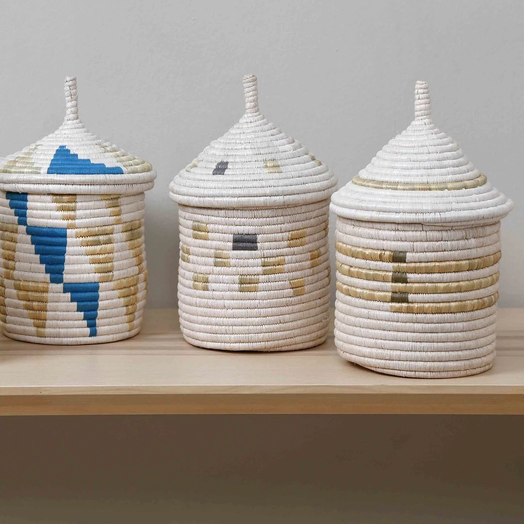 These medium sized, stylish, modern baskets are minimalist in their design with pops of color that will add a polished handmade element to any space. Truly a purchase with purpose, every sale of these baskets directly benefits a refugee woman weaver and her family.