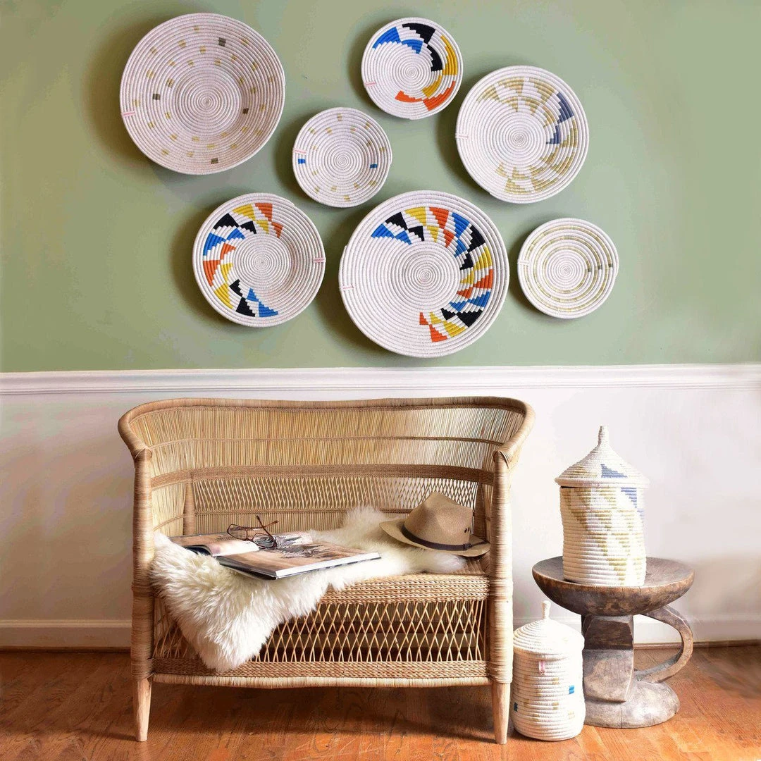 These modern, blue striped wall baskets are minimalist in their design with pops of color that will add a polished handmade element to any space. They look best grouped in a cluster with our other baskets from this collection. Truly a purchase with purpose, every sale of these baskets directly benefits a refugee woman weaver and her family.