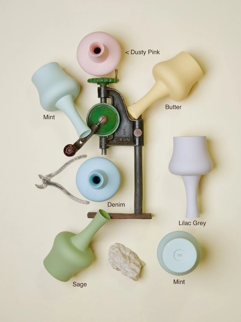 These sweet, little vases add a cheery pop of color to your desk, windowsills, and countertops. Pick your favorite color to style on it’s own for a delicate touch, or mix and match colors and mini vase styles to create a dynamic display.