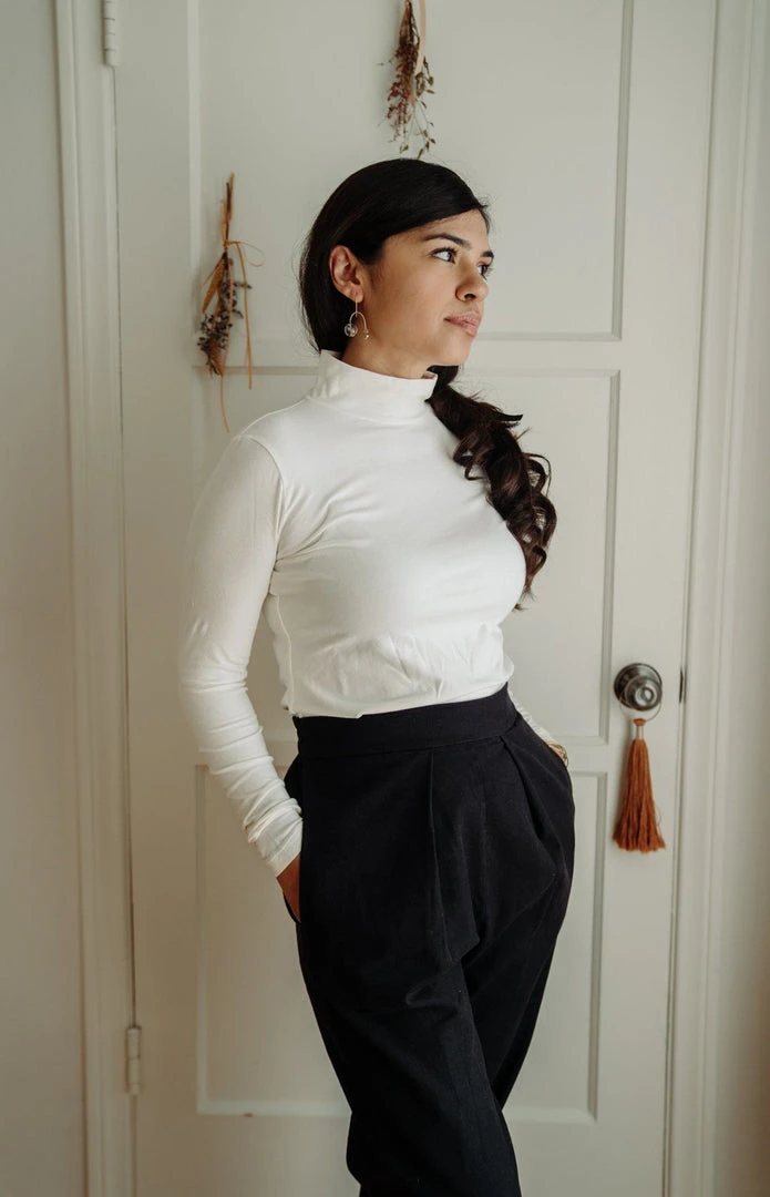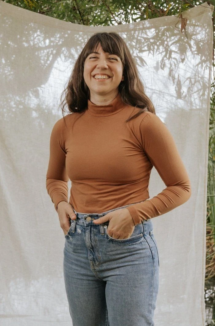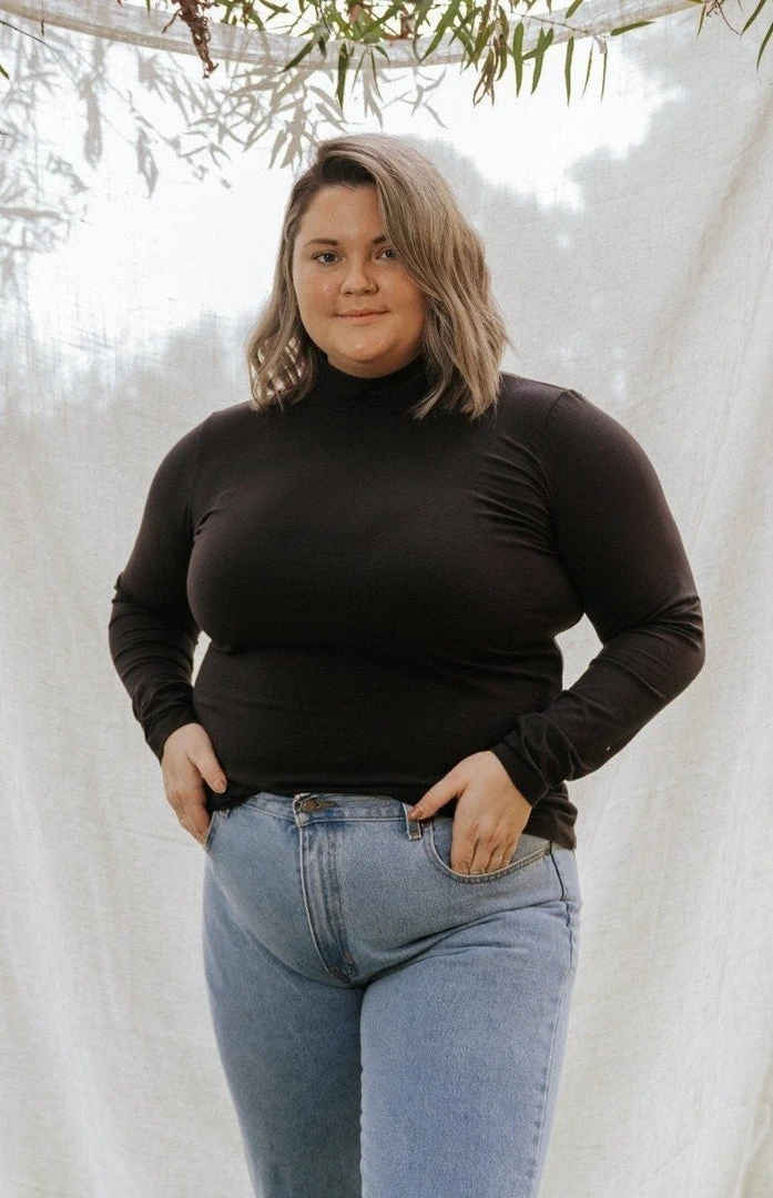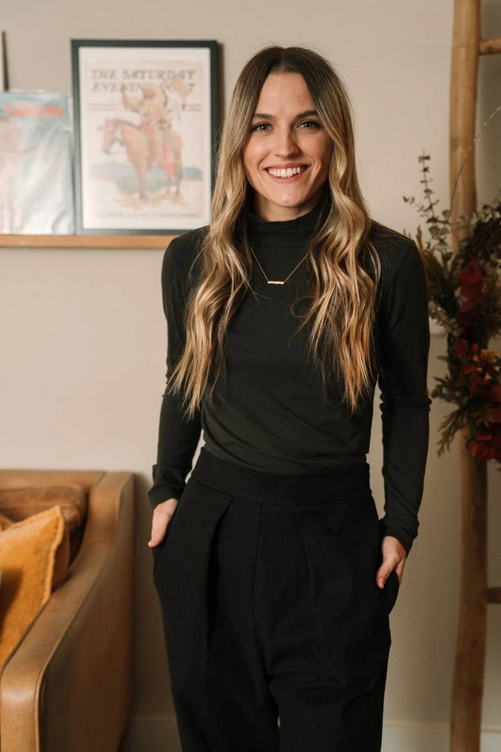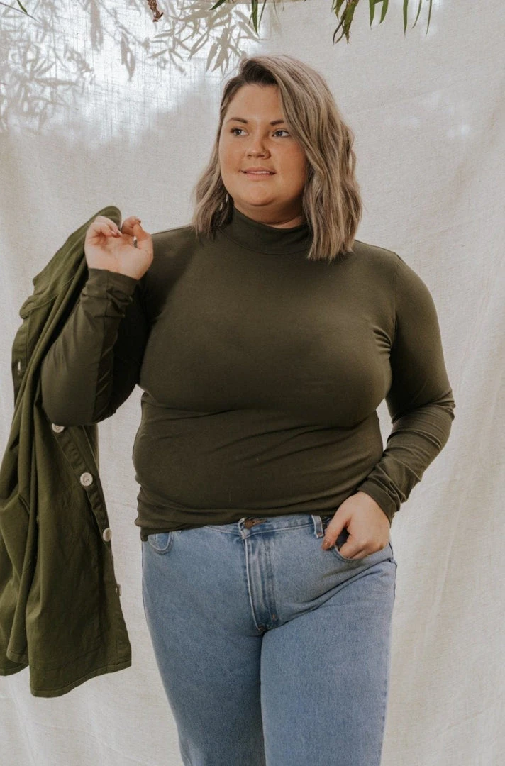The layering piece you’ve been waiting for – a flattering mock-neck long sleeve to wear underneath a jumpsuit or paired with your favorite bottoms. Ultra-soft, not too fitted and not too loose.