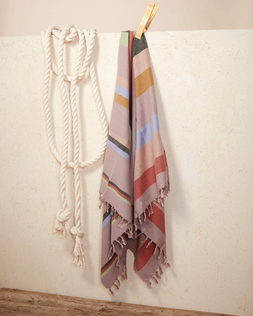 These colorful, honeydew-inspired towels are perfect for days at the beach. Lightweight and fast-drying, they are the perfect addition to all your summer adventures. Handwoven in partnership with weavers in Nahualá, Guatemala. Due to the nature of handcrafted goods, each towel may differ slightly.