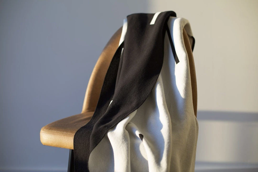 The only message delivered by this blanket’s soft feel and the code-like pattern is comfort. Made in the USA from 100% recycled thread from Spain. The color inverts on either side and stays cozy no matter what.