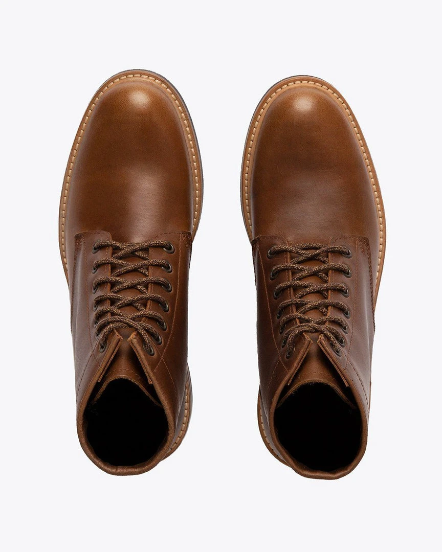 This boot is both functional and stylish. Made with water-resistant leather and a rubber sole that will grip just about any terrain, these are the ideal boots for hiking or running around town. Features a gusseted tongue that will keep your toes dry in the rain and snow.
