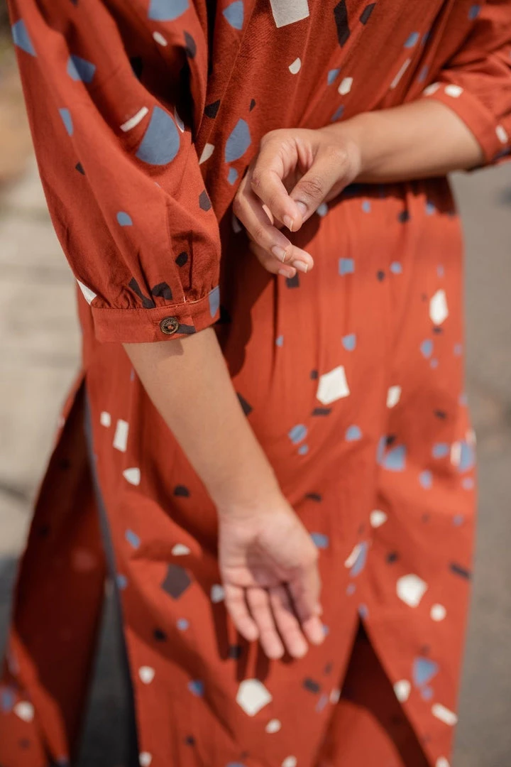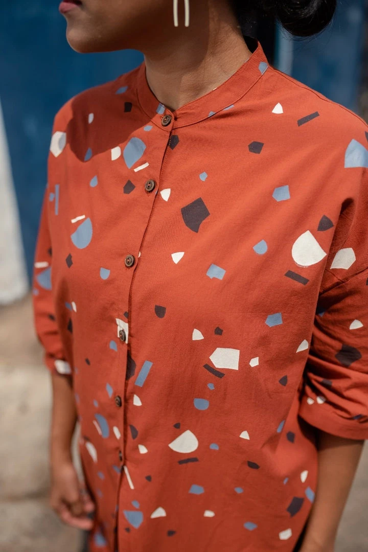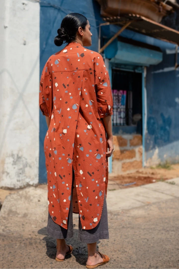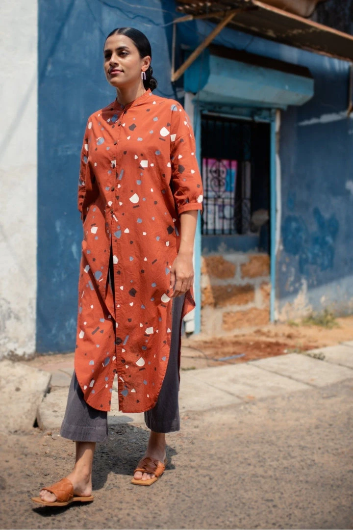 The light and breezy voile fabric used to make the Melena Long Shirt is really soft to the touch and it makes for an extremely comfortable and pleasurable wearing experience. It’s all in the details: wide shoulders, band collar, elbow cuffs, coconut shell buttons. Thanks to its overlapping back panels and high side-slits, it can be styled in a number of ways. Whether you wear it as a layer over a tank top with wide pants or as a shirt with palazzos, your brunch outfit is taken care of.