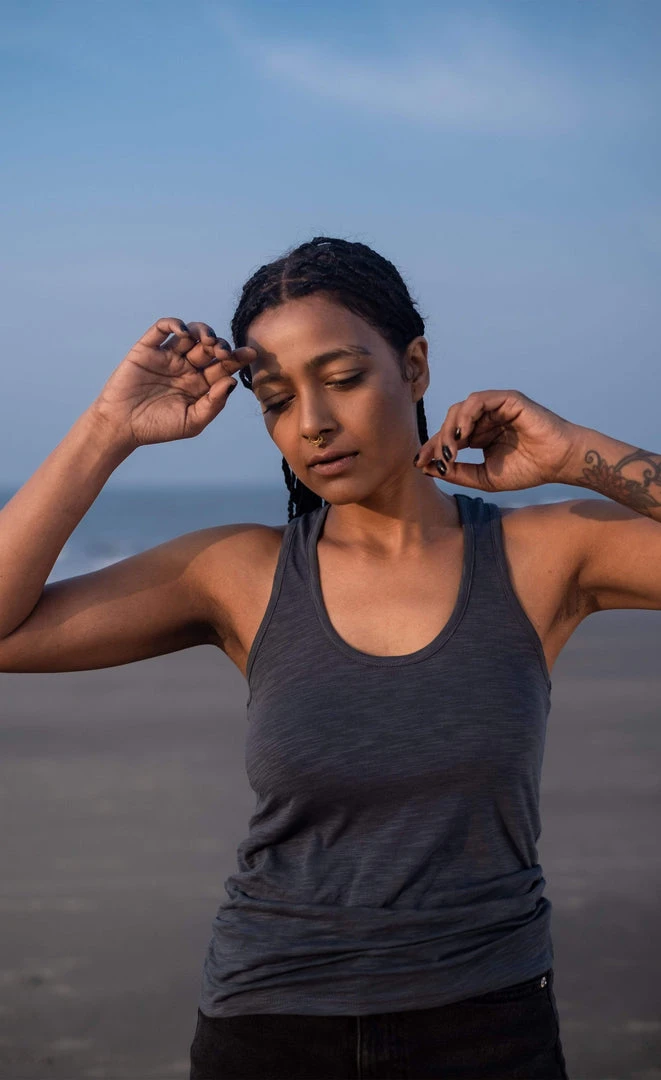 A slim fit, super versatile Racerback Tank top is undoubtedly great for layering, but the shape, neckline and back cut of this tank was designed so it could be your yoga buddy. It’s light and breathable, easy to move your arms around in and a regular length. Crafted from subtly textured slub fabric, it’s a bestselling classic for good reason.