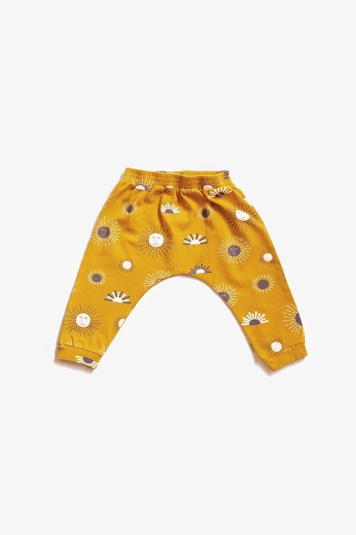 Super soft and organic, these easy fitting harem pants are all-over printed with a Suns print.