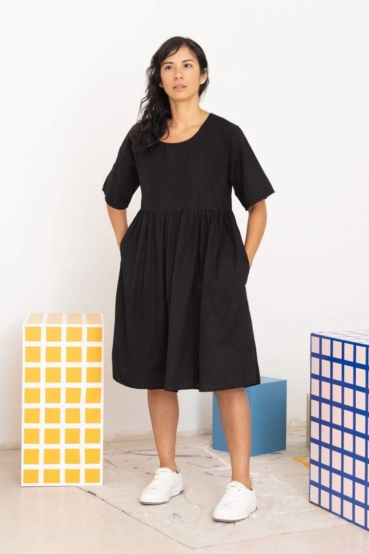 The Jade dress is the perfect go-to dress for all seasons. It’s made of the softest, garment-dyed Tencel/cotton blend. Made in small productions in Los Angeles, CA.