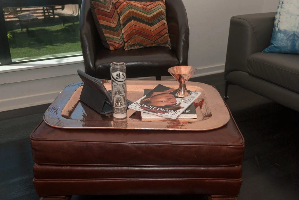 The Tessaly Recycled Copper Rectangle Platter is a versatile, handcrafted piece to elevate your home for years to come. Sertodo’s hammered copper and polish creates an intimate glow and dazzling shine.