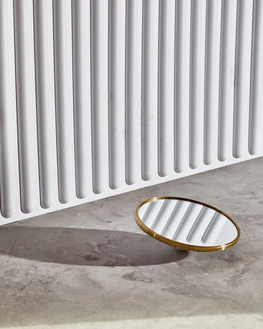 The bobble mirror is a fun addition to any surface. A hand cast base allows the mirror to hover and bobble around. You can pick the mirror up or find the right angle as it swivels around.