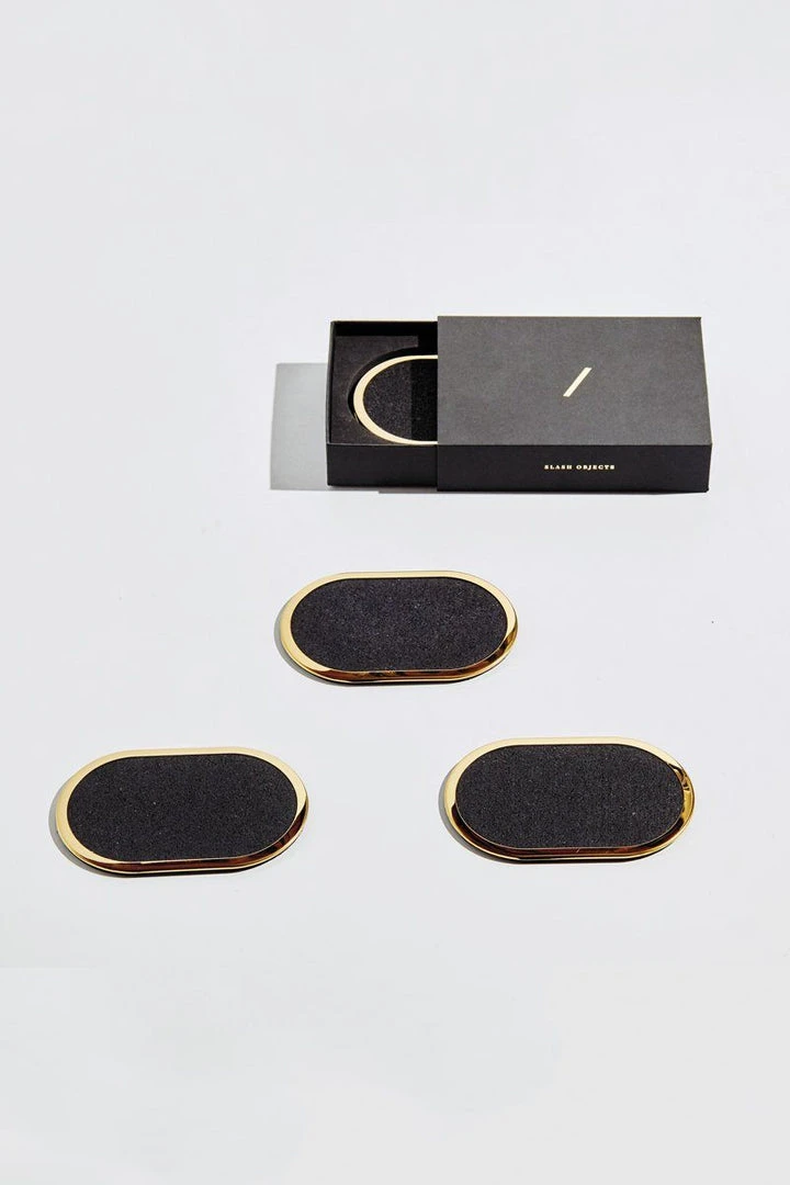 A truly chic way to protect your surfaces in style. These make an excellent host gift for anyone in love with the details. Coasters arrive in a beautiful matte black box with gold lettering.
