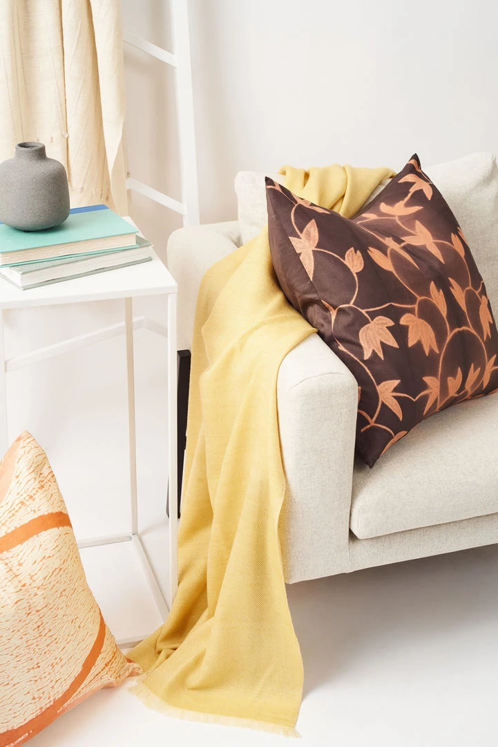 This dandelion textile can be used as a bedspread in your personal space or as a throw in your living space. A soft, subtle twill weave, and neat fringes give this throw a clean, classic, and modern appeal.