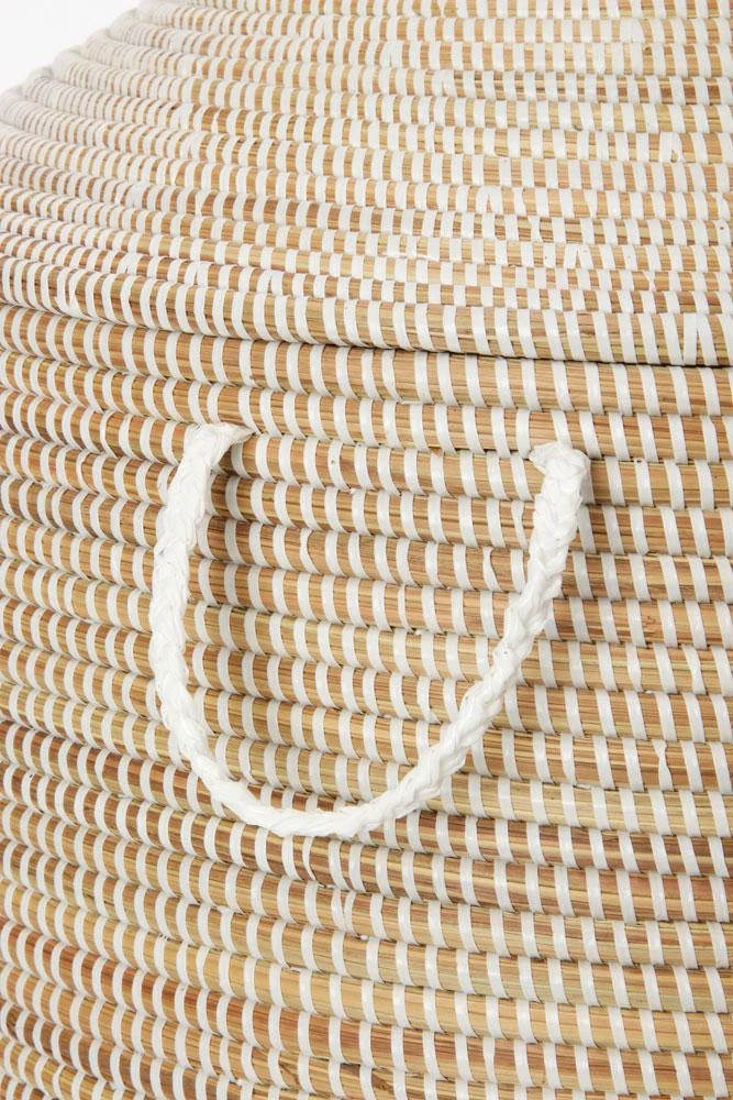 Using upcycled plastic strips and abundant natural grasses, Wolof women in Senegal weave these modern baskets which offer beauty and functionality. The hampers are new in 2017 and feature a tight coil stitch and excellent quality.