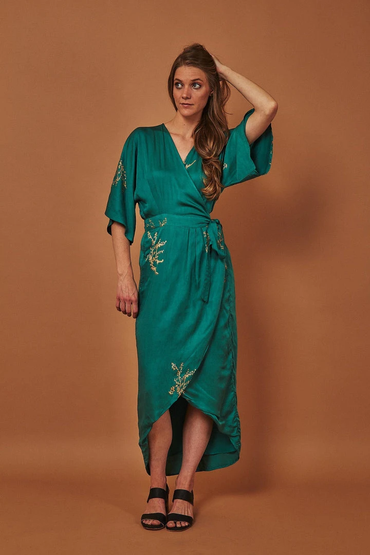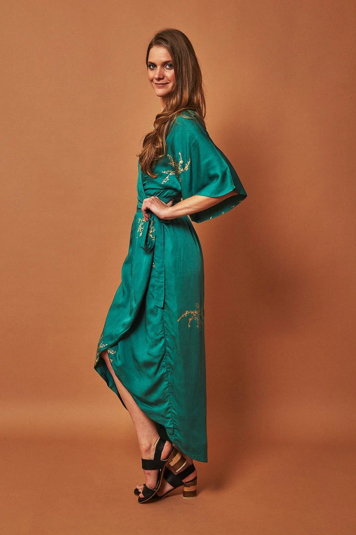 This maxi wrap dress in buttery soft modal fabric (what Symbology likes to call ‘vegan silk’) hugs your curves in all the right ways. And gives that gorgeous hourglass silhouette to those who aren’t as curvaceous. You’ll feel like you’re wearing a bathrobe but you’ll look like a million bucks.