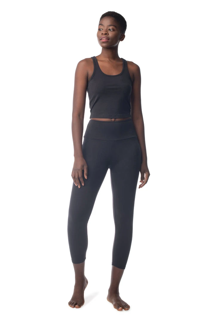 The 7/8 Legging is a cropped, simple legging for anything from stretching to a workout.