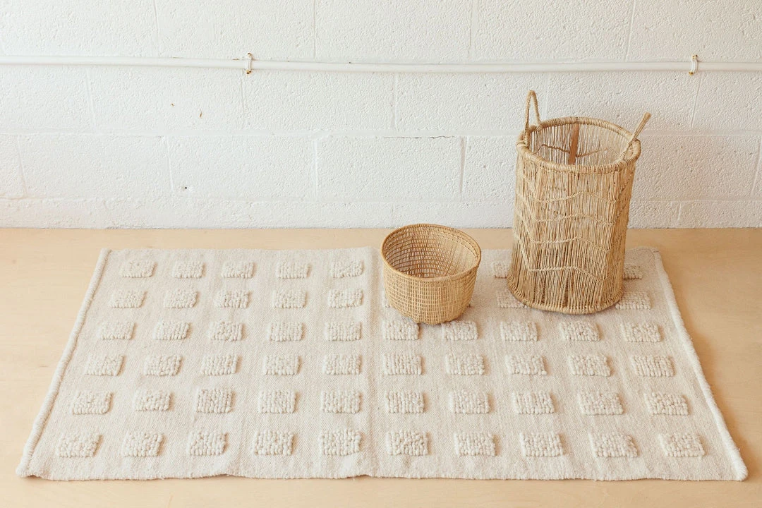 Beautifully textured, the Cuadro rug brings a balanced feel into any room. The wool is sourced locally in Central Mexico and the dyeing and weaving is done in the family workshop that has been passed down over the generations.