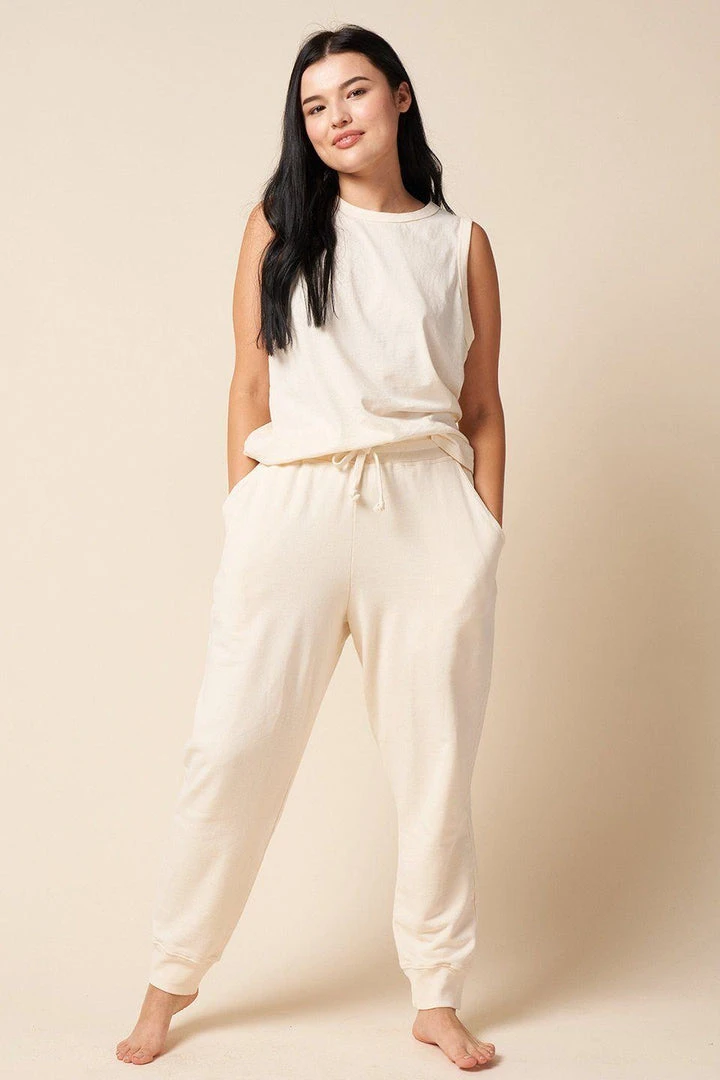 Tuck in, tie, let loose – whatever you fancy. This tank pairs with anything from your favorite high waisted jeans, to the Classic Jogger. Made of recycled and organic cotton, its soft feel and vintage-y wash comes from non-toxic and low impact dyes.