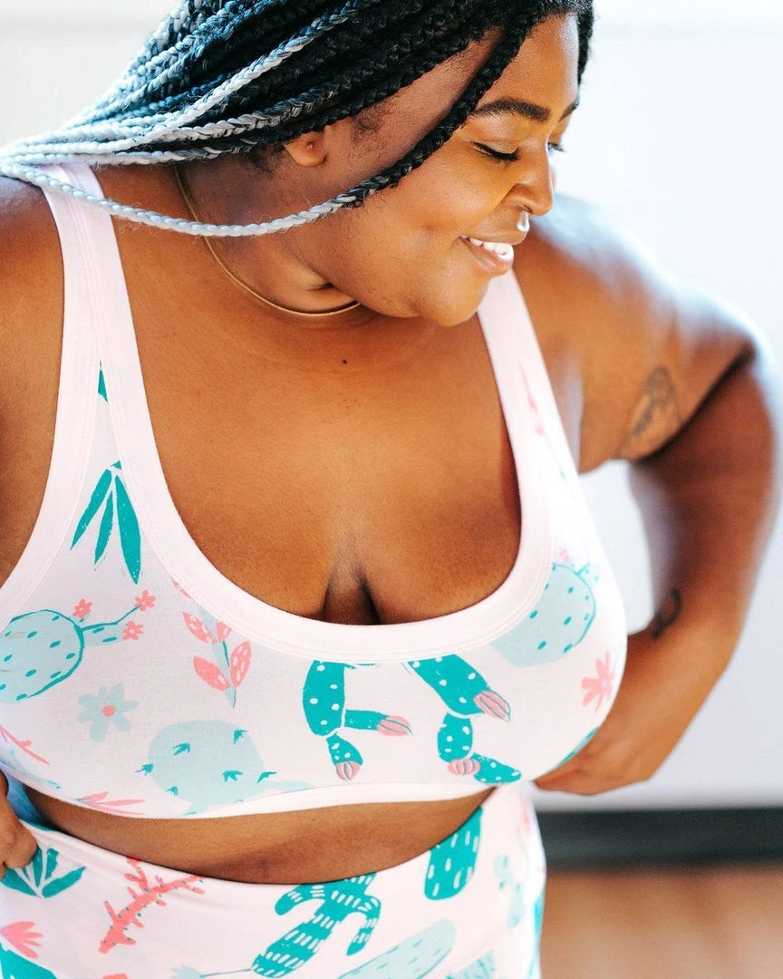 Something soft and comfy to slip into for those days you’re feeling a little prickly. This bralette is super comfy. There is a piece of elastic sewn into the binding for extra support below the bust. It feels supportive and solid, without feeling constraining or too bra-like.