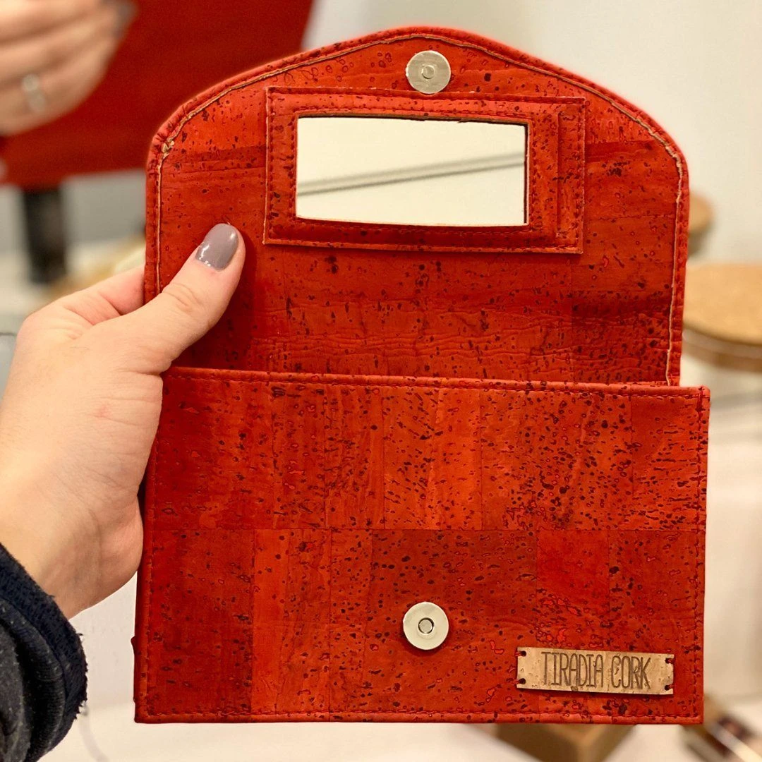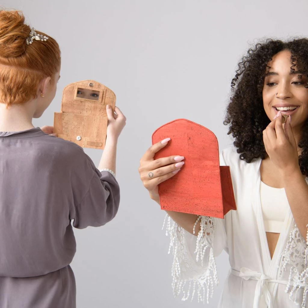 The Glam Bag has a rigid structure to keep your essentials safe, and a built in mirror to make on the go touch-ups a breeze. This versatile bag will help you keep all of your daily beauty products organized and safe in your day bag, and also makes an ideal travel bag. Made from vegan, hypoallergenic, antimicrobial, waterproof, lightweight, durable, biodegradable and recyclable natural cork.