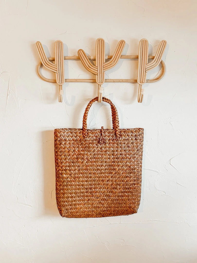 The Amber Woven Tote is casual and functional while showcasing artisanal weaving and natural materials. This tote is strong enough for your books, wide enough for a plant and could not be any cuter.