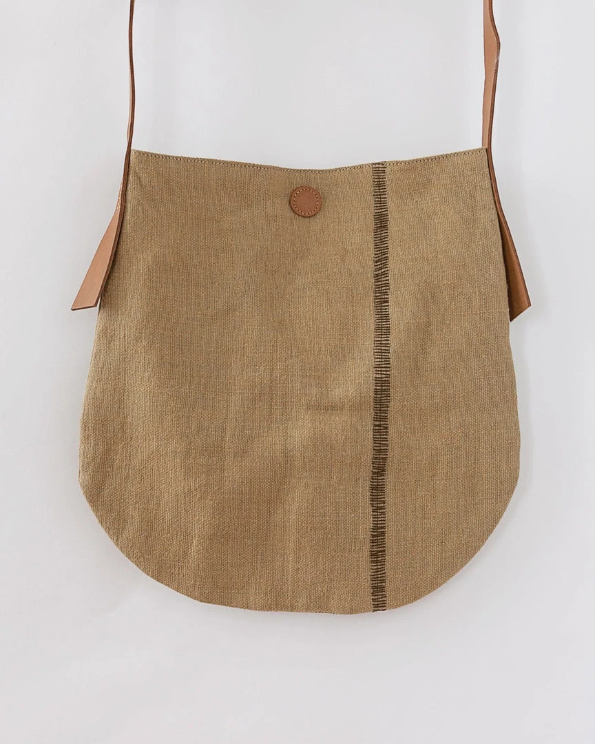 A Jute canvas exterior with hand-stitched detail, leather handle, snap closure and a fully lined interior with two pockets, will be sure to make this tote your new favorite bag. The Archer Tote has been handcrafted by women working within a Fair Trade program in Bangladesh.