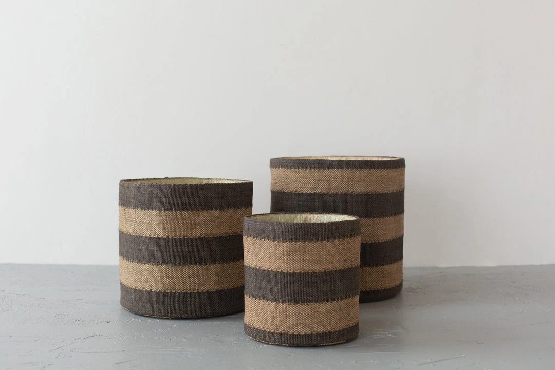 The Peri Round Storage Basket set is great for storing bits and pieces anywhere in your home. The perfect catch-all for any space, three sizes to use for laundry, toy storage, tv remotes or even as a decorative plant holder as they are fully lined.