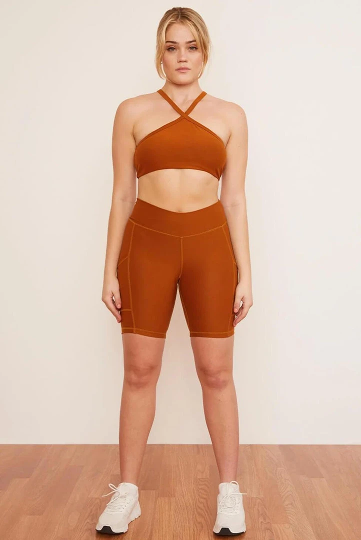 A wearable golden hour. Perfect for biking — or taking a cute pic next to a bike. Mid-thigh length with two deep side pockets and a high waist silhouette, these shorts are flattering on all body types. Style with a printed top for a fun and flirty vibe.