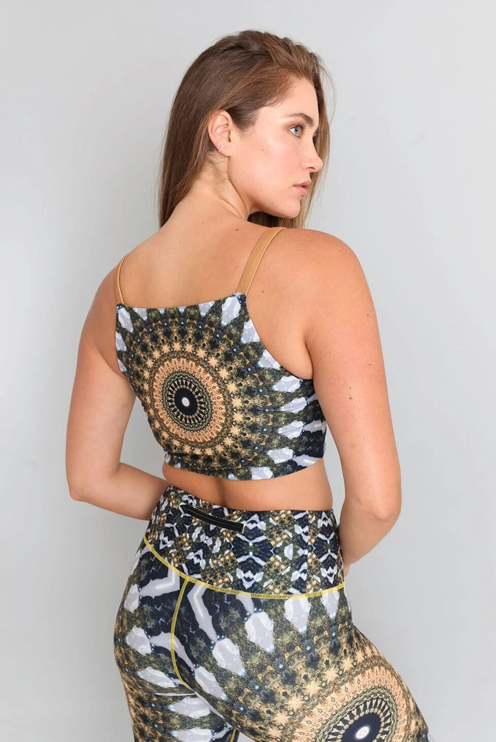 One top, four ways to rock it. Keep it sporty with a high neck at the front or make it sexy with a key-hole cut-out. Turn heads in the bestselling Noor Print or reverse it to a beautiful solid desert hue. This fabric features 4-way stretch and anti-microbial properties allowing you to move freely while staying fresh.