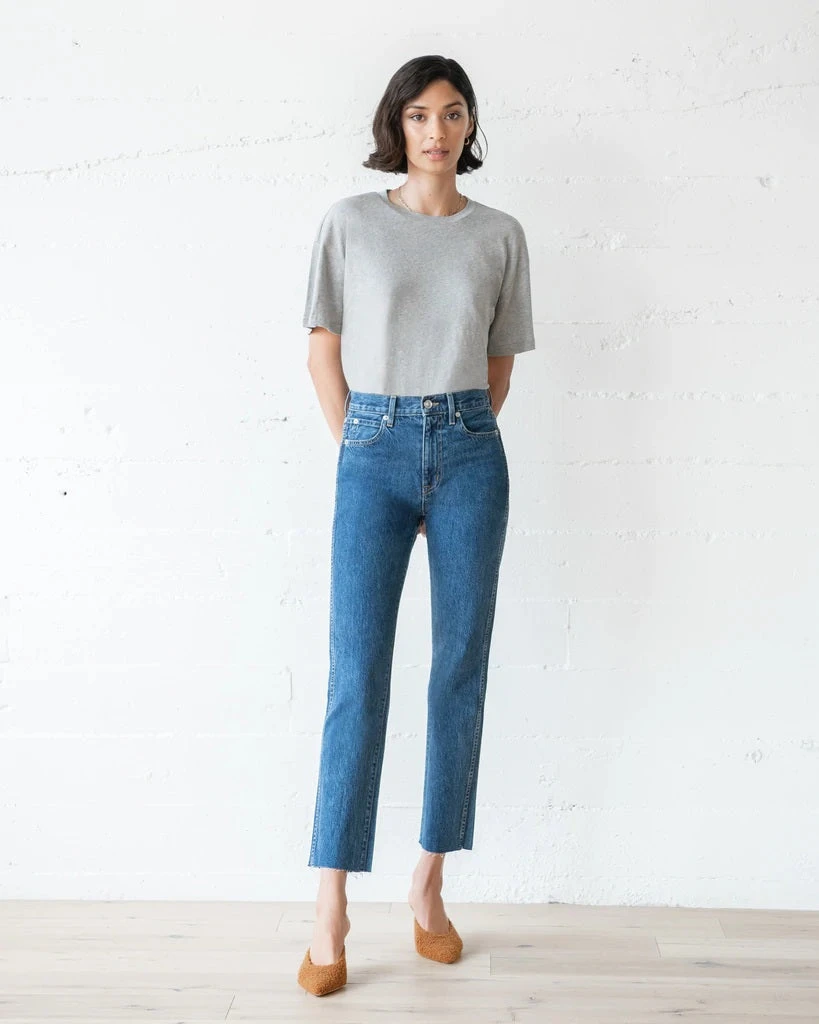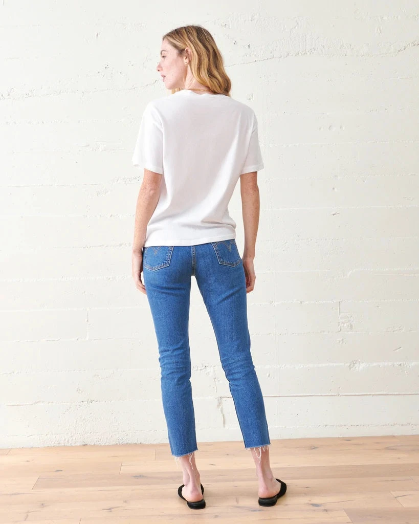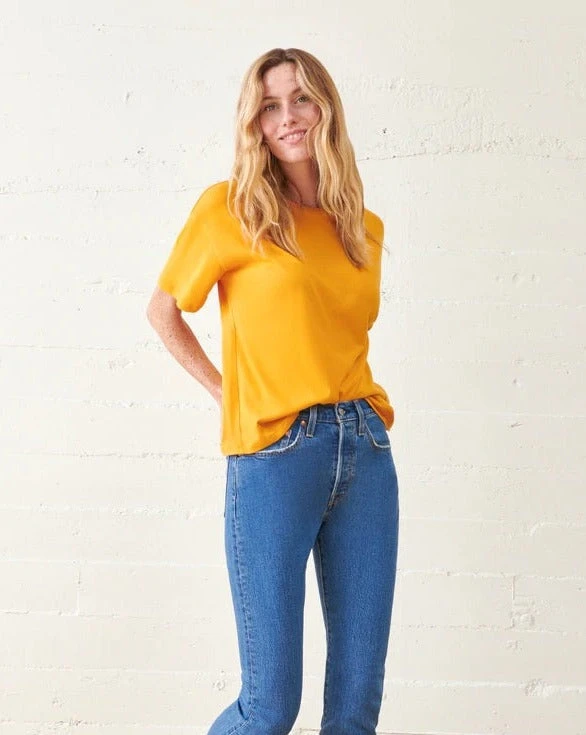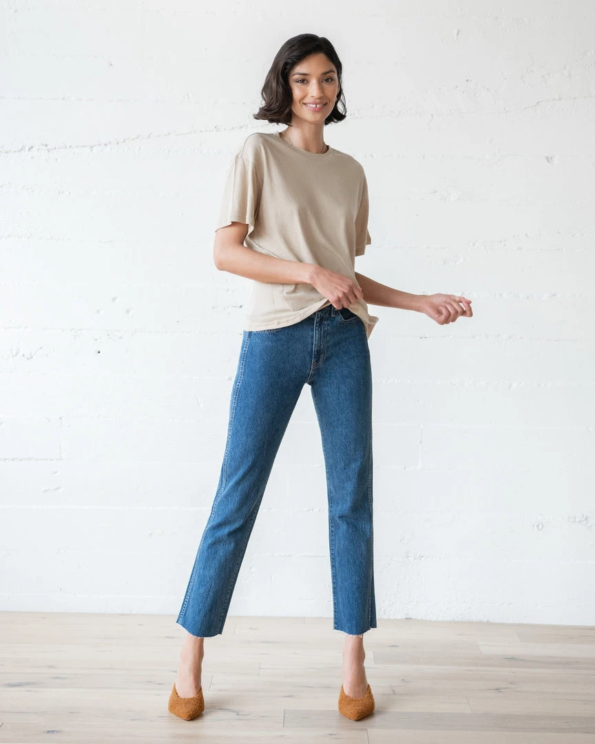 The No. 02 Tee is oversized and has a gentle boxy shape with drop-shoulders and a roomier feel. Made of 100% organic jersey cotton.Â