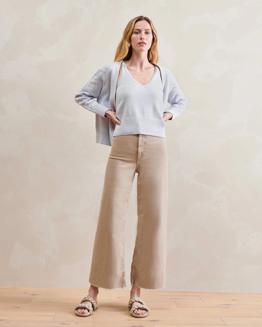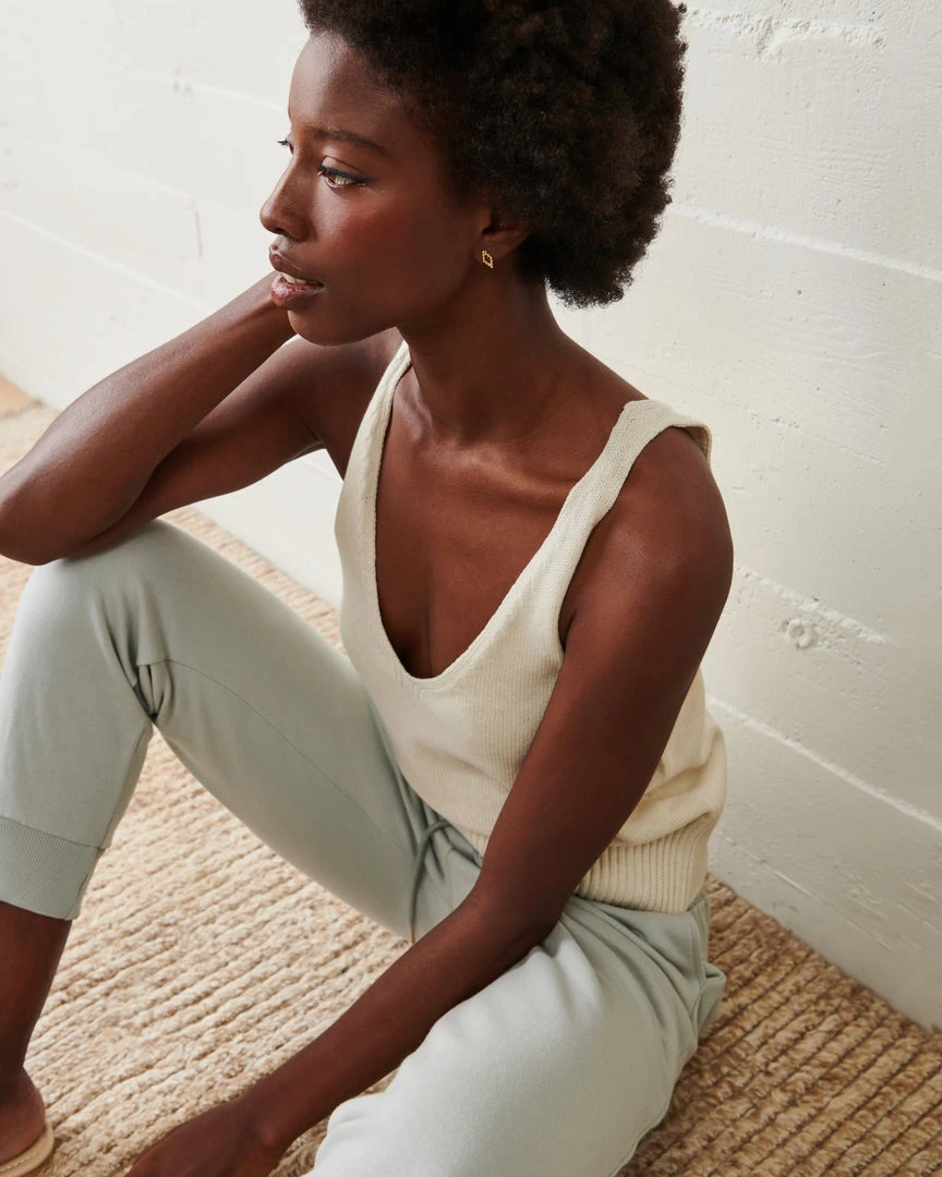 With a classic v-neckline delicately laced with drop needle details, the Sweater Camisole is the iconic spring layering piece. Knit from a luxe blend of organic cotton and wool.