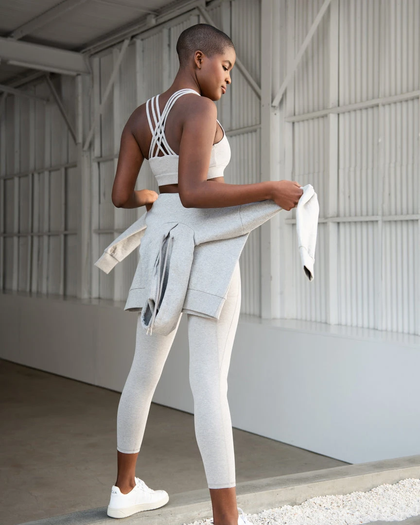 The Define Yoga Bra is made with a balanced blend of organic cotton and spandex. An ideal complement to the Renew Legging, with sleek triple-crossed strap detailing in back and full coverage in the front.