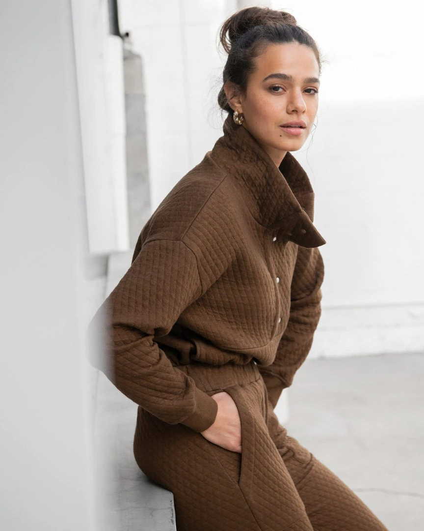 Inspired by the unmistakable outdoorsy, East Coast aesthetic and crafted out of a textured blend of soft Organic Cotton and Recycled Polyester, the Quilted Timber Sweatshirt is an “eco-take” on an old-school camp classic. Pair with the matching joggers for a laid back, yet polished look.