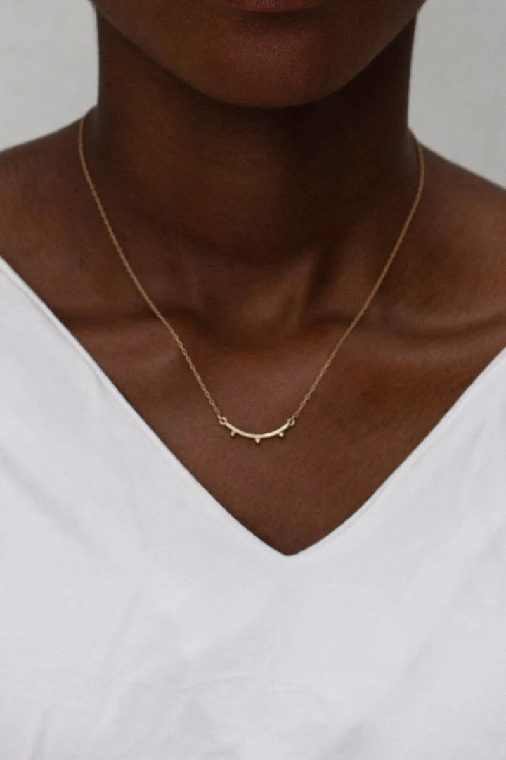 ‘Bentu’ means ‘almost full‘ in Tumbuka, the language of Northern Malawi. The Bentu Necklace is a minimal, elegant necklace that adds a subtle textural element to any outfit. We love it paired with the matching Bentu Hoop Earrings.
