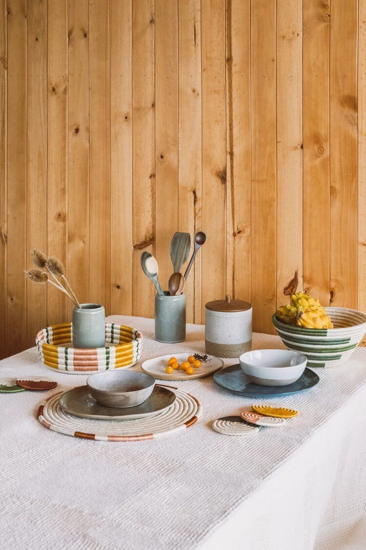 This basket is the perfect catchall or fruit basket. Designed with an organic line design of fique fiber, each basket is made with a traditional coil technique found in the region of Boyacá. Due to the handmade nature, slight variations in color or size may occur.
